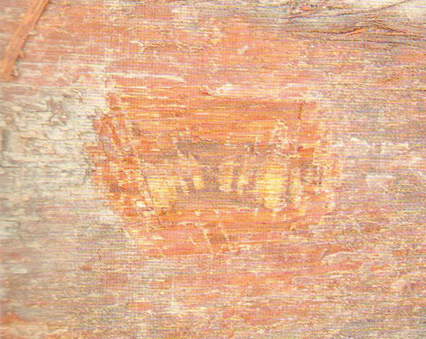 ●識別要點(diǎn):樹皮極薄。軸向薄壁組織短翼狀、聚翼狀、環(huán)管束狀及不規(guī)則弦向帶狀。管孔內(nèi)侵填體豐富。生材有檸檬味;木材有油性感。材質(zhì)重硬。本屬另一種為馬氏鐵樟木E.malagangai,較坤甸鐵樟木徑級小,材色紅,質(zhì)輕,有較長的翼狀薄壁組織。